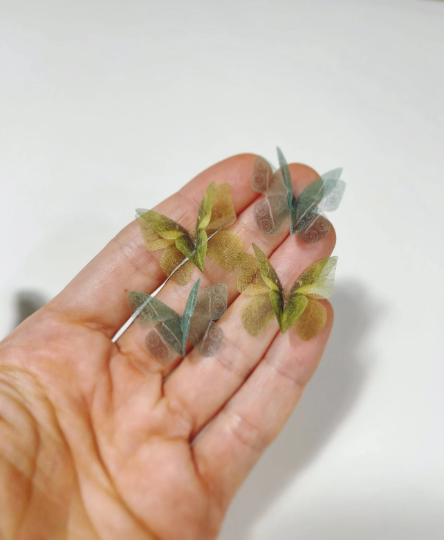 Spring greens silk organza butterfly | wedding veil | wedding dress applique | wedding invitations