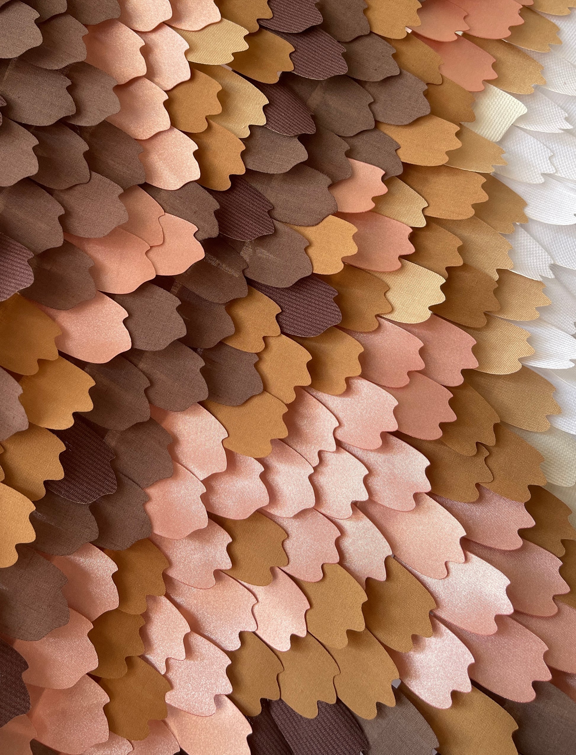 This seamless artistic installation intricately imitates the delicate and complex patterns found in the skin of a butterfly, enhancing the sense of fragility and impermanence while evoking the softness of wings in motion.